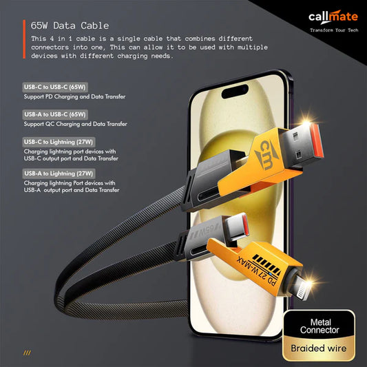MAK USB Type C Cable 6 A 1.5 m Braided 4 in 1 65W Lightning Fast Charging Cable Compatible for iOS & Android